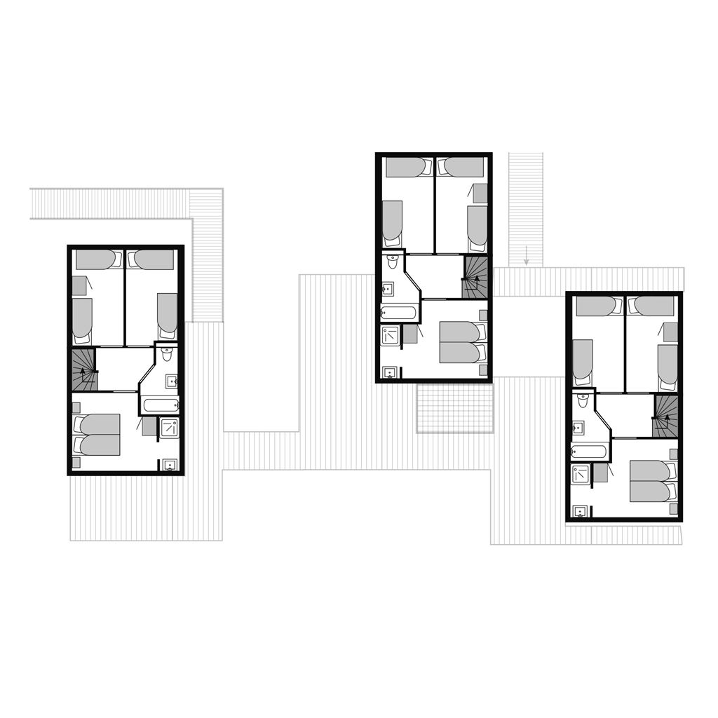 - Huit chambres à coucher avec deux lits boxspring pour 1 personne au sous-sol