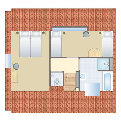 - Salle de bain avec baignoire, douche à l'italienne et lavabo au premier étage