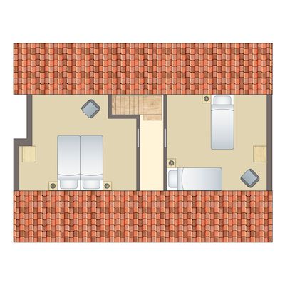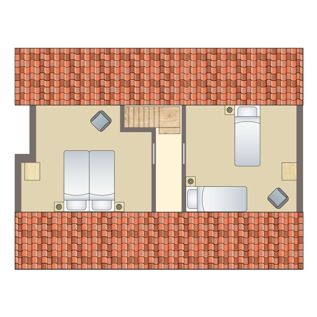 - Chambre à coucher avec deux lits boxspring pour 1 personne et surmatelas