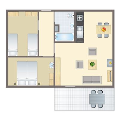 - Salle de bains avec baignoire ou cabine de douche, lavabo et toilette