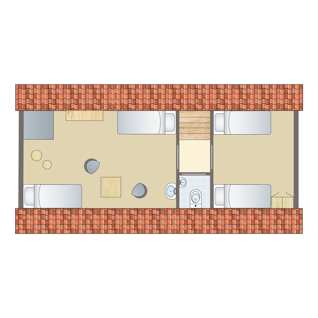 - Chambre à coucher avec deux boxsprings 1 personne et lavabo au premier étage