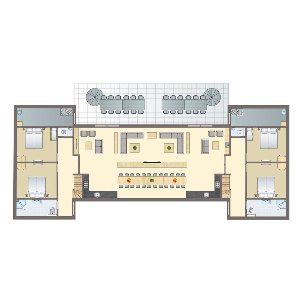 - Quatre chambres à coucher avec deux boxsprings Auping 1 personne, couvre-matelas softtoper et tv