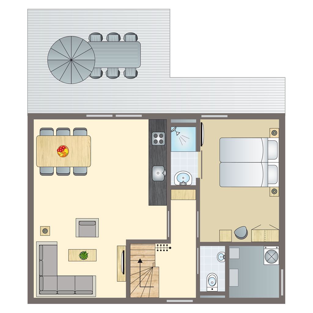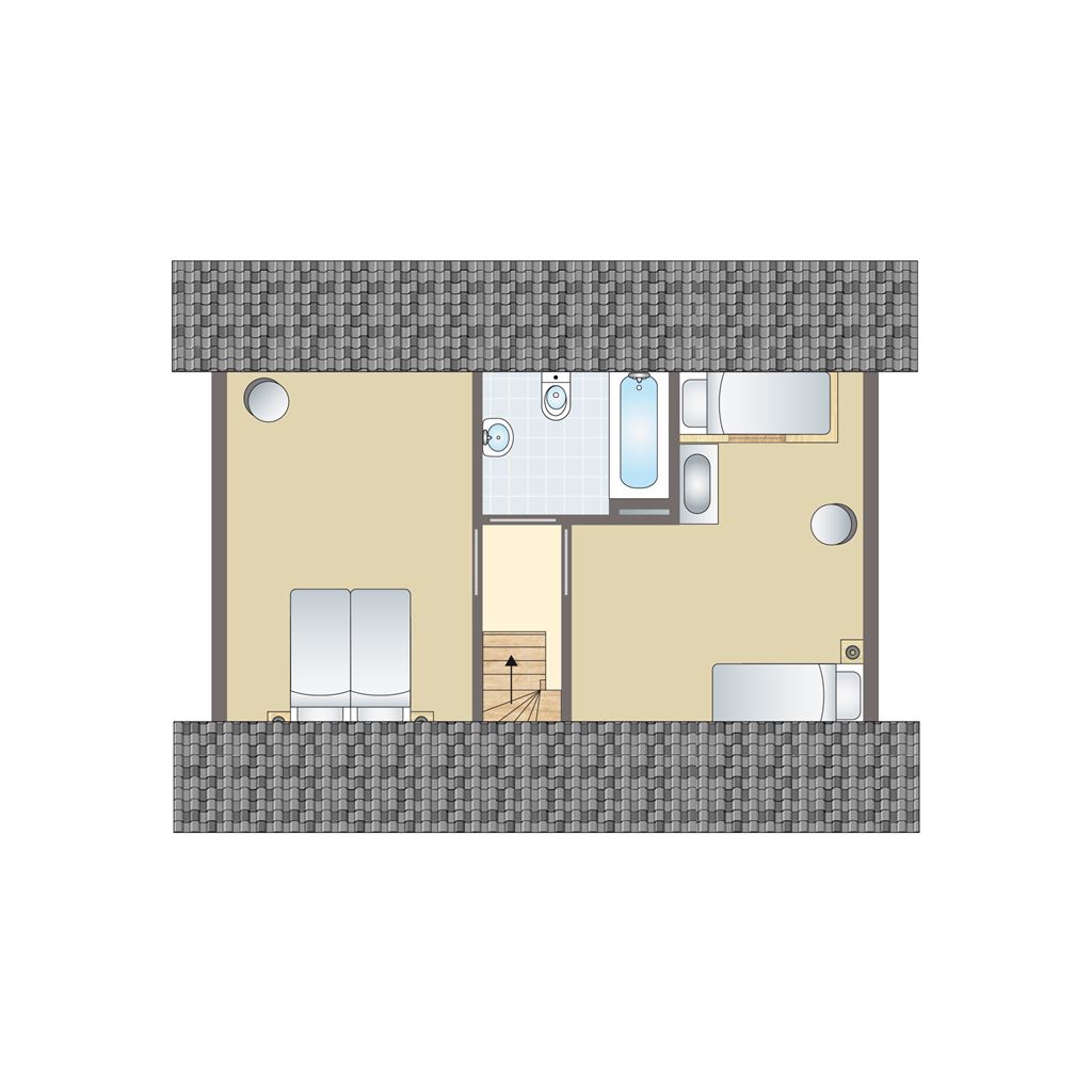 - Salle de jeu/chambres à coucher enfants avec lit mezzanine et lit 1 personne au premier étage