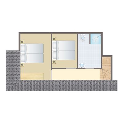 - Chambre à coucher avec deux lits boxspring pour 1 personne et surmatelas
