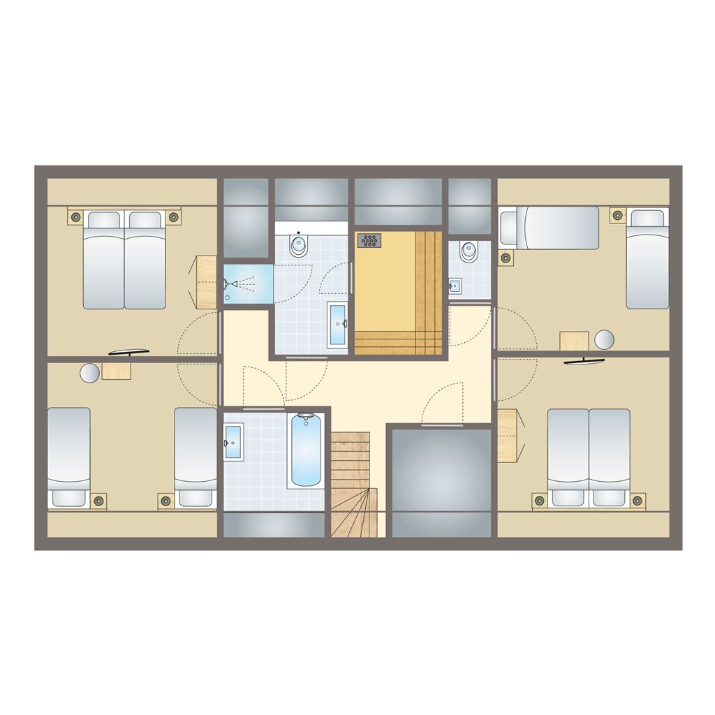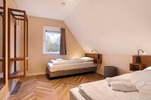 - Vier slaapkamers met twee 1-persoons boxsprings