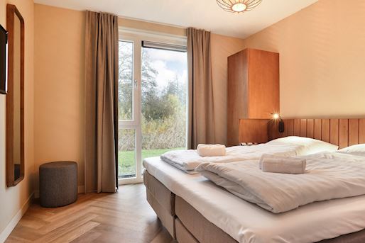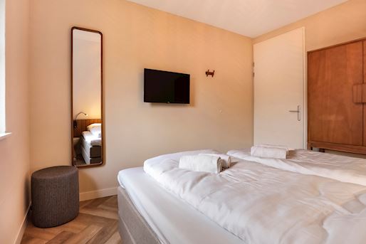- Twee slaapkamers met twee 1-persoons boxsprings en softtopper
