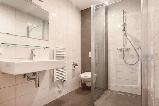 - Badkamer met inloopdouche en wastafel op de begane grond