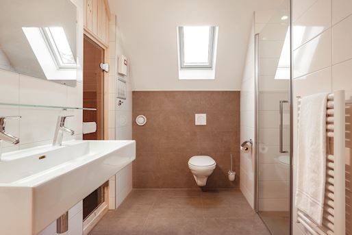 - Badkamer met inloopdouche, wastafel en toilet op de eerste verdieping