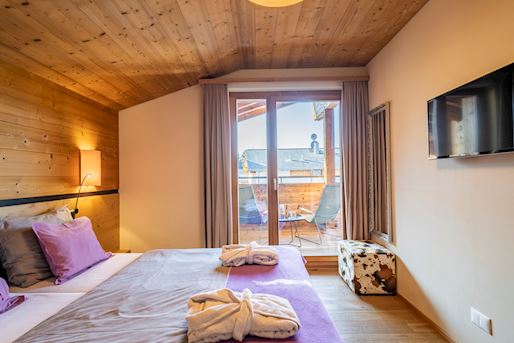 - Slaapkamer met 2-persoonsbed, 2-persoonssofttopper en flatscreen-tv