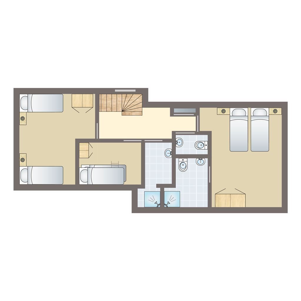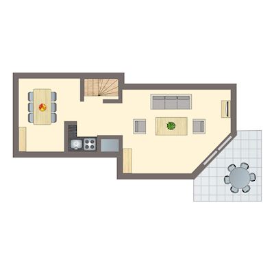 - Woonkamer is gelegen op de eerste verdieping (bereikbaar via een open trap)