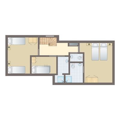 - Slaapkamer met twee 1-persoons boxsprings en softtopper