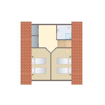 - Slaapkamer met twee 1-persoons boxsprings op de eerste verdieping