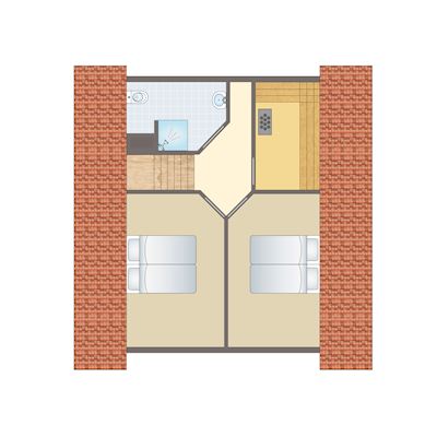 - Twee slaapkamers met twee 1-persoons boxsprings op de eerste verdieping