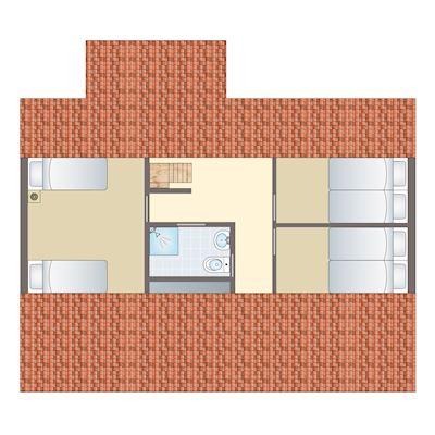 - Drie slaapkamers met twee 1-persoons boxsprings op de eerste verdieping