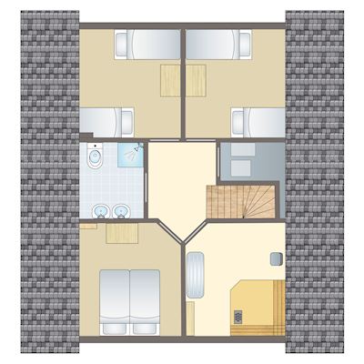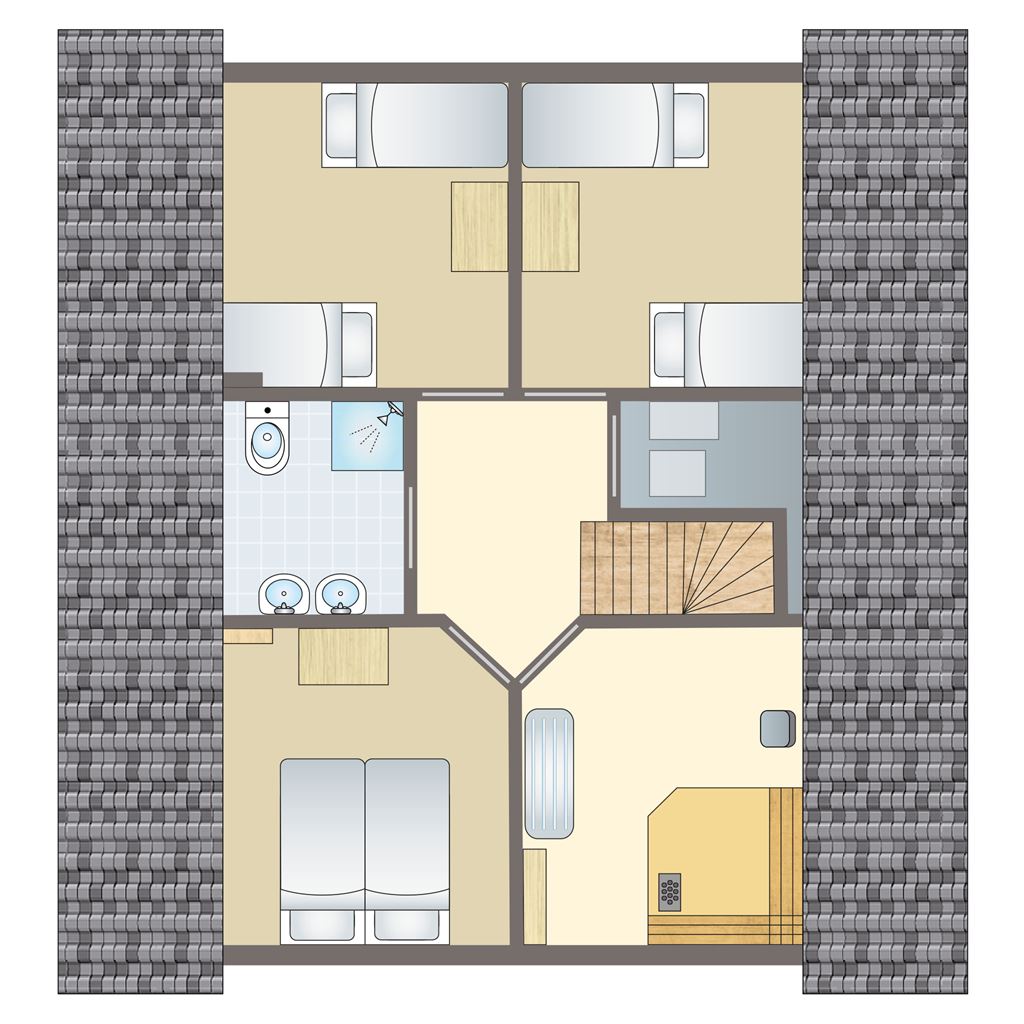 - Twee slaapkamers met twee 1-persoons boxsprings op de eerste verdieping