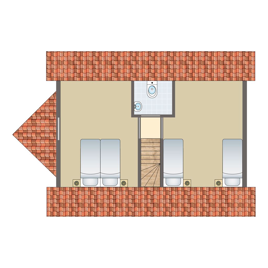 - Twee slaapkamers met twee 1-persoons boxsprings op de eerste verdieping
