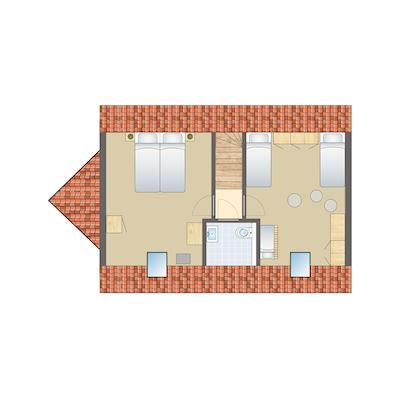 - Kinderspeel-/slaapkamer met twee juniorbedden op de eerste verdieping