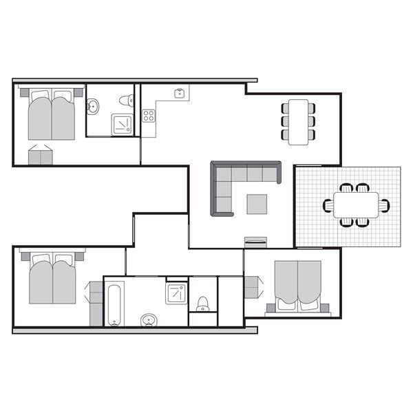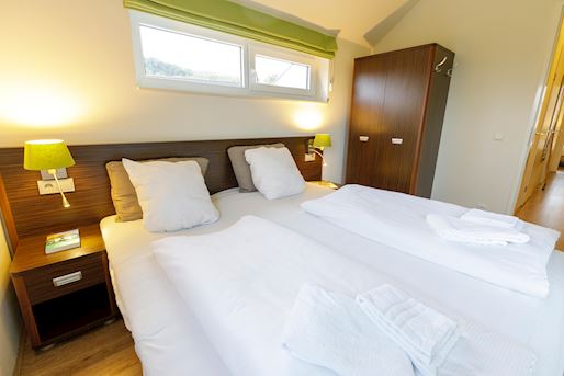- Twee slaapkamers met twee 1-persoons boxsprings