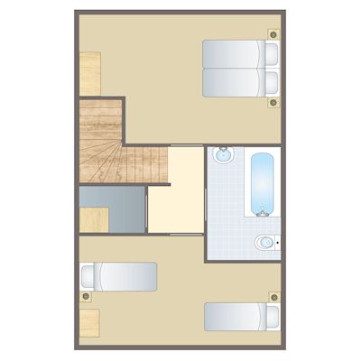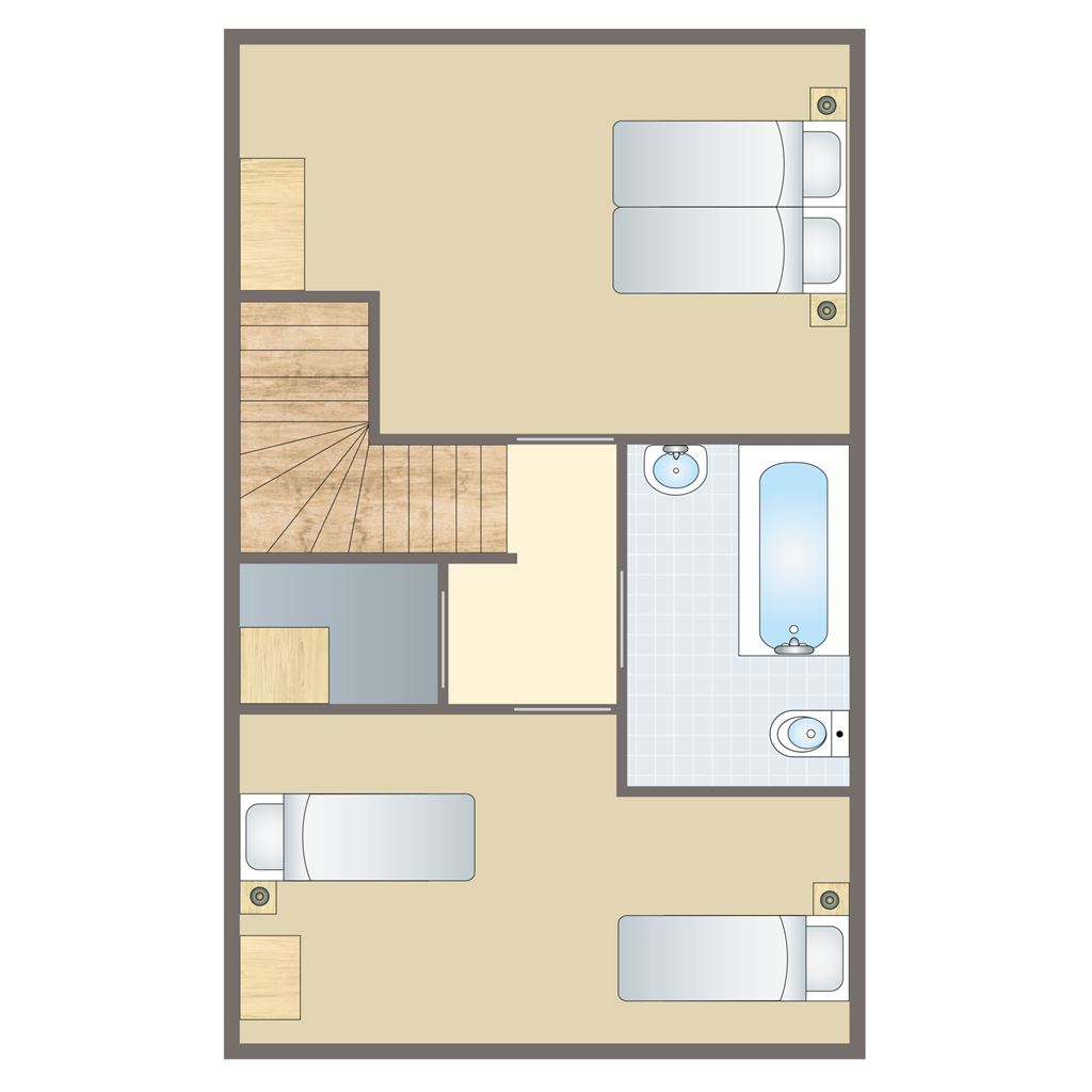 - Slaapkamer met twee 1-persoons boxsprings op de eerste verdieping