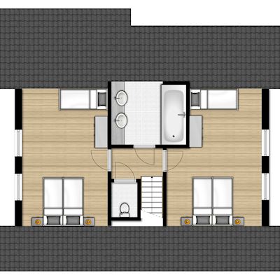 - Twee slaapkamers met drie 1-persoons boxsprings