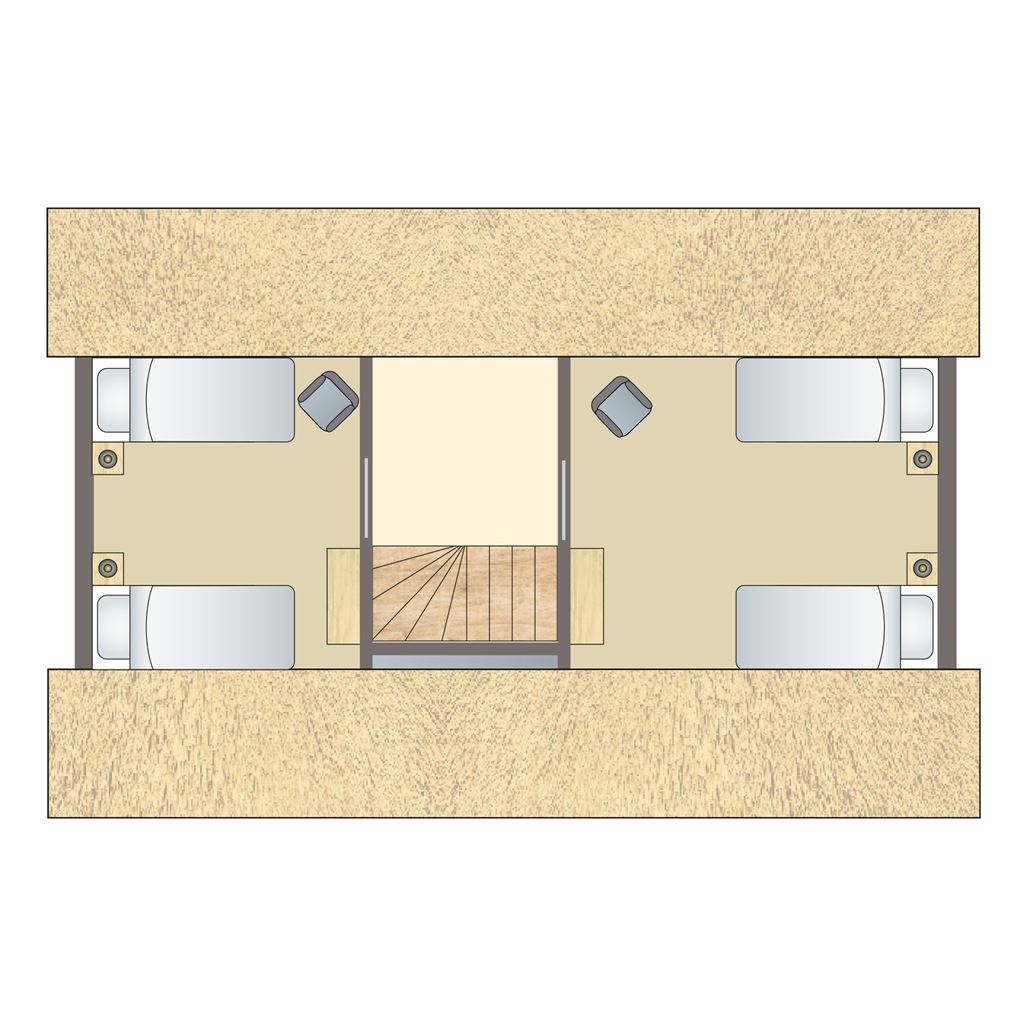 - Twee slaapkamers met twee 1-persoons boxsprings op de eerste verdieping