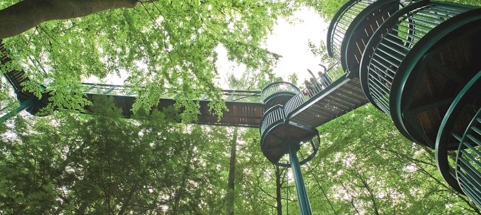 Je maakt hier een avontuurlijke wandeling tussen de toppen van de bomen. Vanaf het Boomkroonpad zijn verschillende avontuurlijke wandelroutes en speurtochten gemarkeerd. Kinderen kunnen uitgebreid spelen in het speelbos.