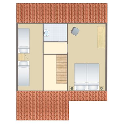 - Twee slaapkamers met twee 1-persoons boxsprings op de eerste verdieping