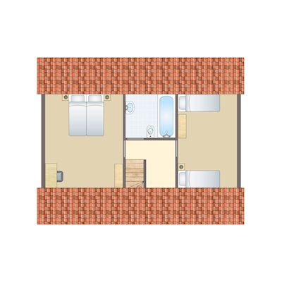 - Twee slaapkamers met twee 1-persoons boxsprings op de eerste verdieping
