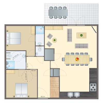 - Eettafel minimaal 70 cm hoog en onderrijdbaar