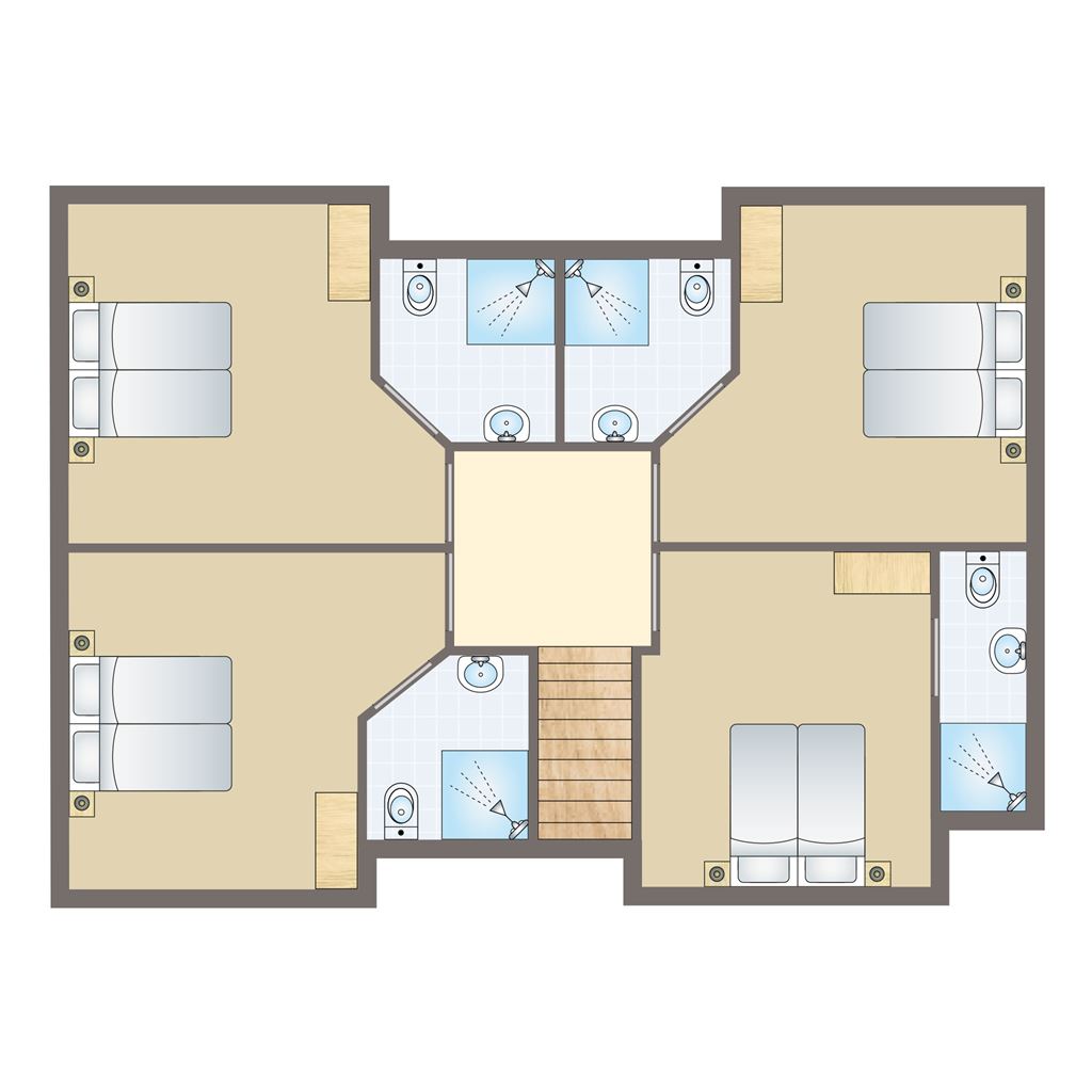 - Vier slaapkamers met twee 1-persoons boxsprings op de eerste verdieping