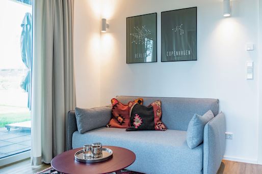 - 2-persoonsbed in de woonkamer