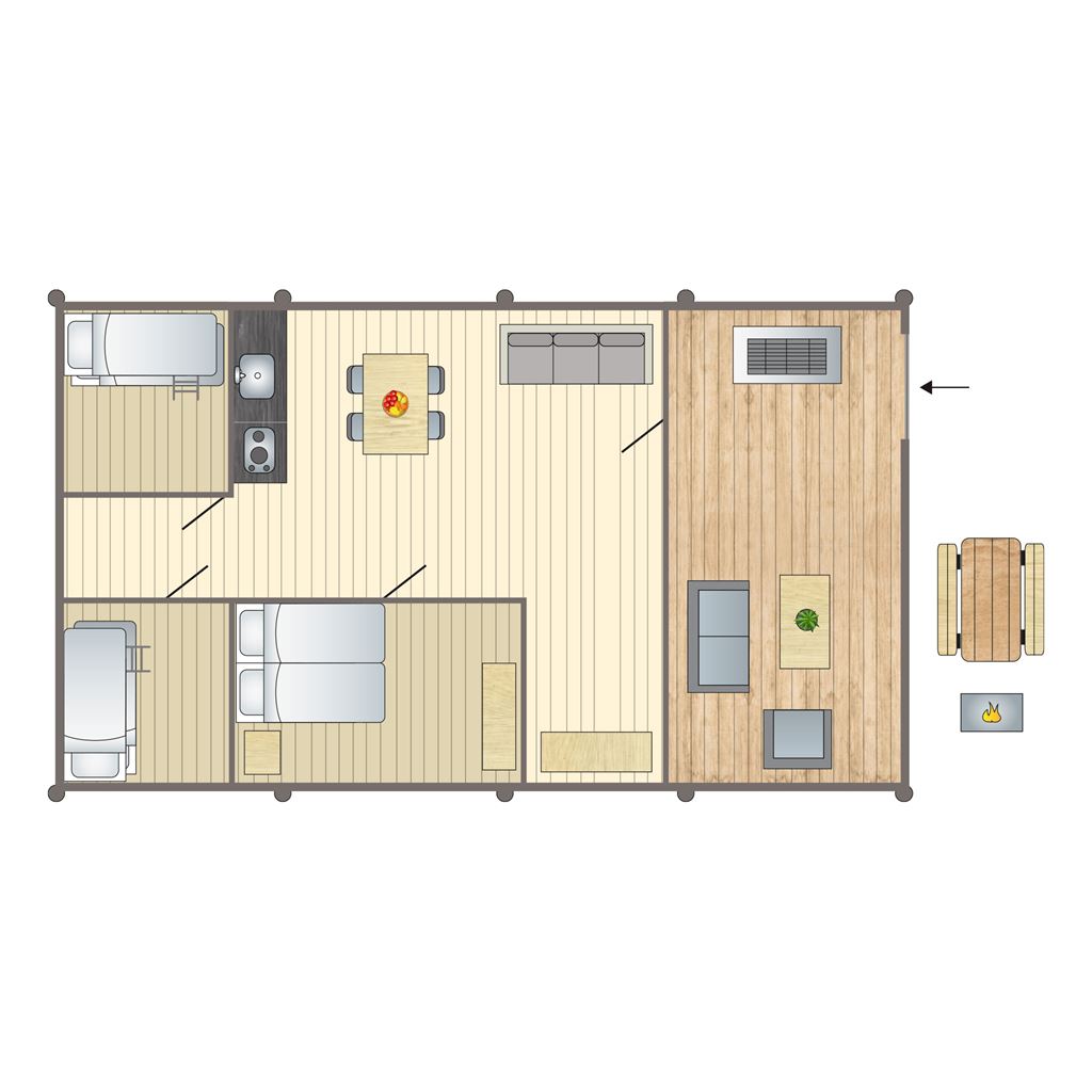 - Twee slaapkamers met stapelbed