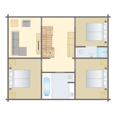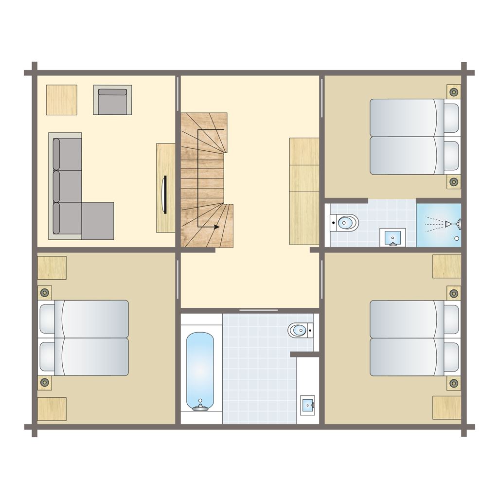 - Twee slaapkamers met twee 1-persoons boxsprings op de eerste verdieping