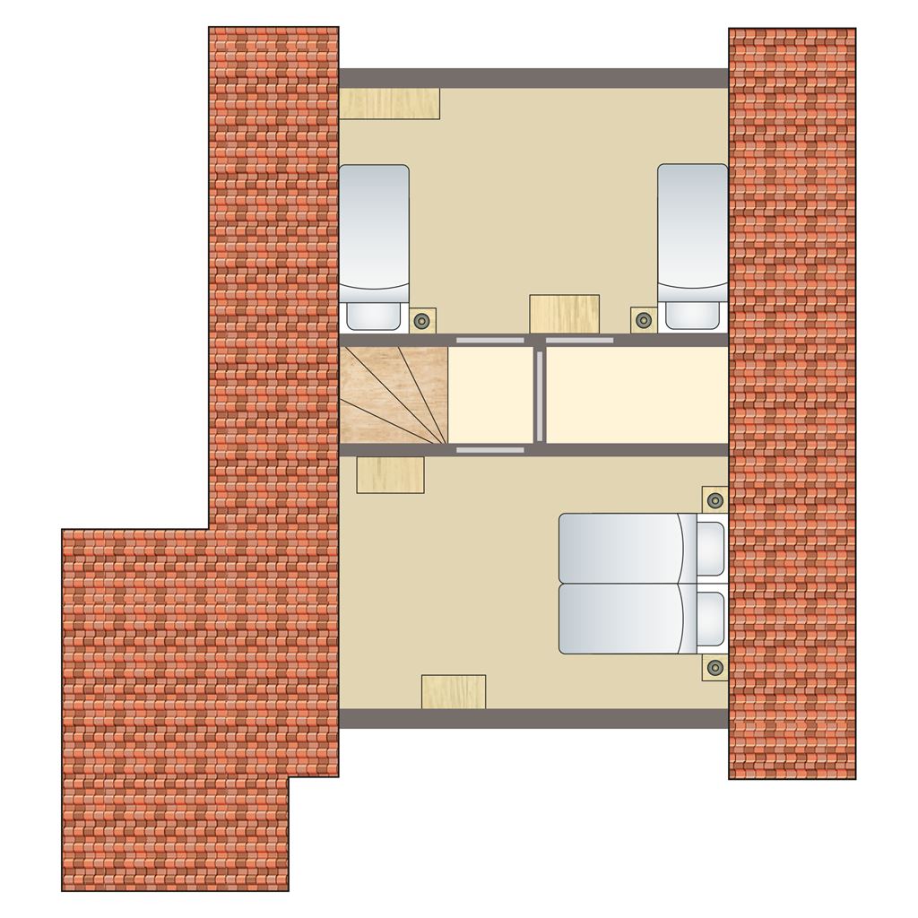 - Slaapkamer met twee 1-persoons boxsprings op de eerste verdieping