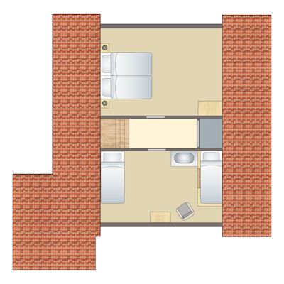 - Slaapkamer met twee 1-persoons boxsprings op de eerste verdieping