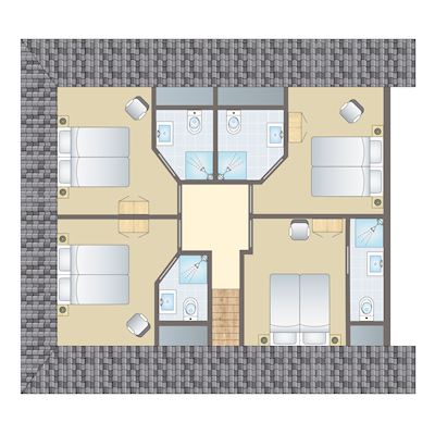 - Vier slaapkamers met twee 1-persoons boxsprings op de eerste verdieping