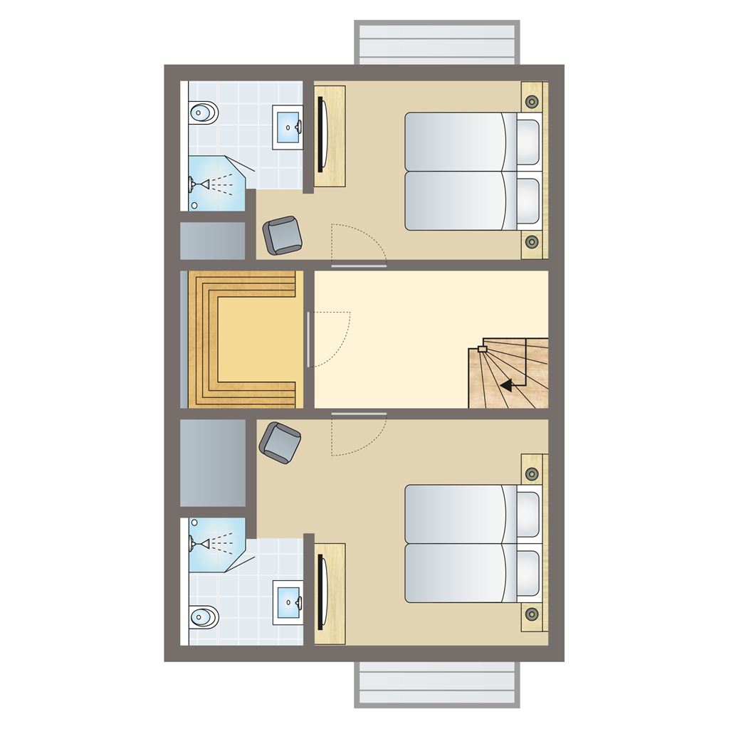 - Two bathrooms en suite with walk-in shower, sink and toilet located on the first floor