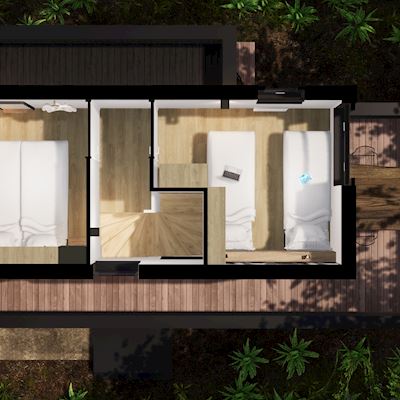 - Slaapkamer met twee 1-persoons boxsprings op de tweede verdieping