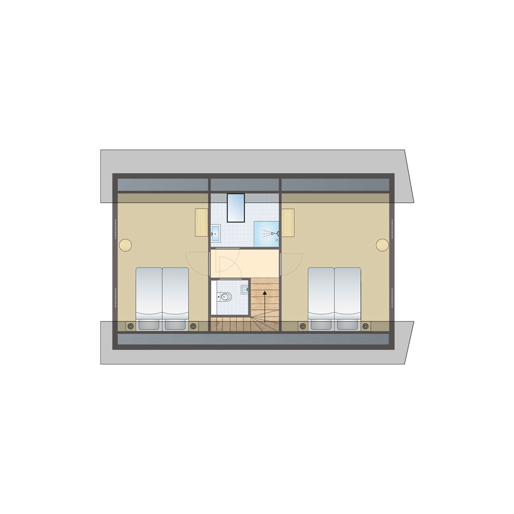 - Twee slaapkamers met twee 1-persoonsbedden