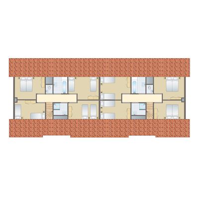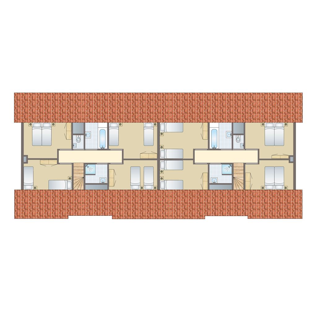 - Zeven slaapkamers met twee 1-persoons boxsprings op de eeste verdieping