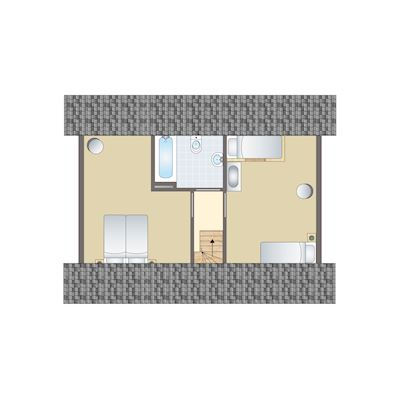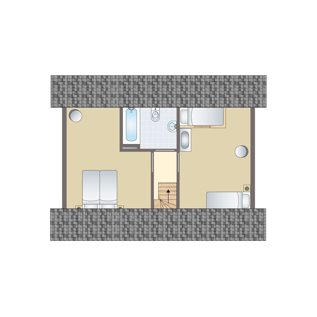 - Slaapkamer met twee 1-persoons boxsprings op de eerste verdieping