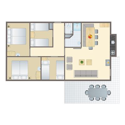 - Geschikt voor maximaal zes volwassenen en twee kinderen