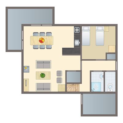 - Twee slaapkamers met twee 1-persoons boxsprings op de eerste verdieping
