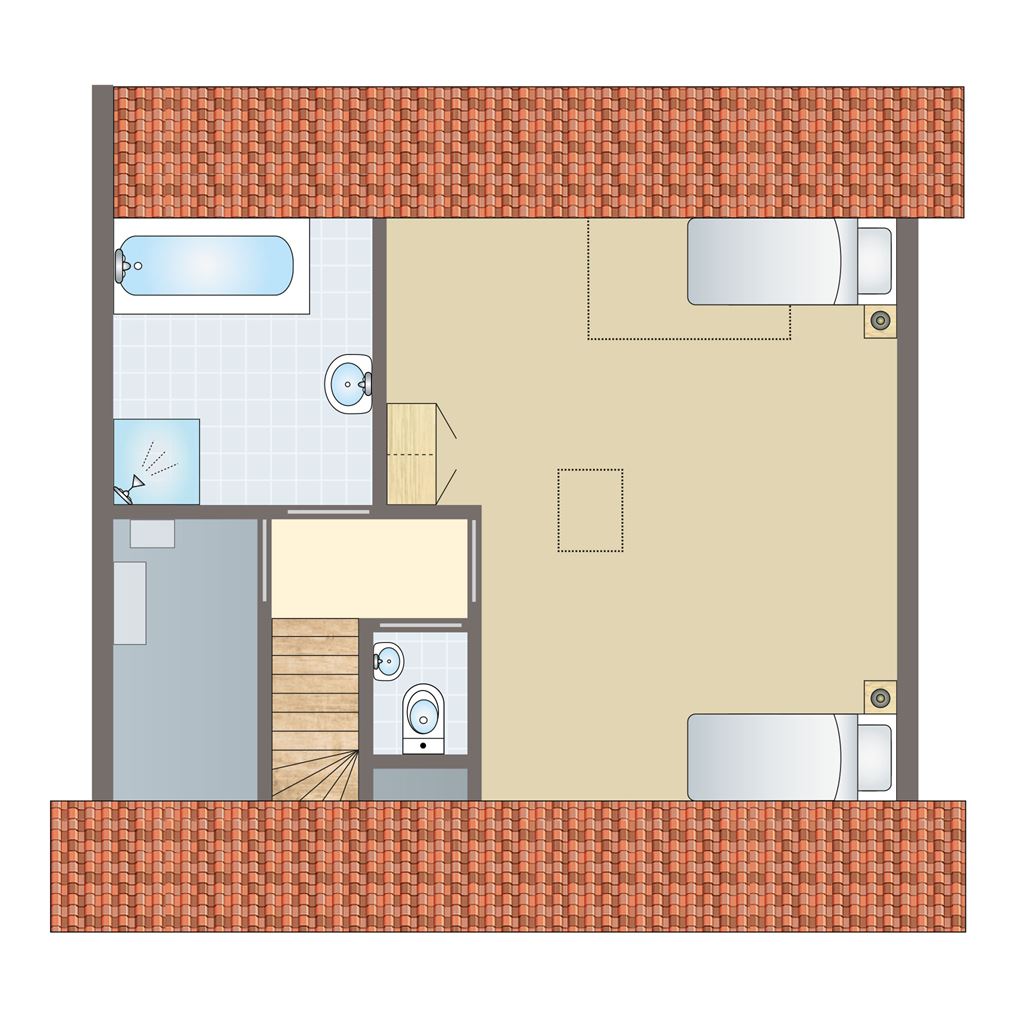 - Slaapkamer met twee 1-persoons boxsprings op de eerste verdieping