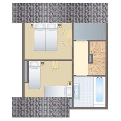 - Slaapkamer met twee 1-persoons boxsprings op de eerste verdieping